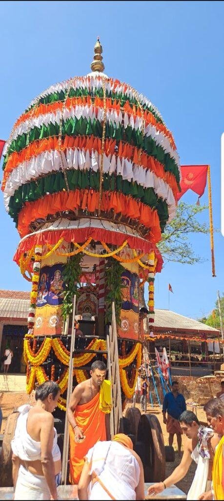 ಬಳಿಕ ರಥದಲ್ಲಿ ಶ್ರೀ ದೇವರಿಗೆ ಪೂಜೆ ಆರತಿ ನಡೆಯುತ್ತಿದ್ದಂತೆ ಭಕ್ತರ ಗೋವಿಂದ ನಾಮ ಸಂಕೀರ್ತನೆಯೊಂದಿಗೆ ರಥವನ್ನು ಎಳೆದು ಪುನೀತರಾದರು.ನಂತರ ರಥದ ಬಳಿ ಬಟ್ಟಲು ಕಾಣಿಕೆ ನಡೆಯಿತು. ದೇವರು ರಥದಿಂದ ಇಳಿದು ದೇವಳದ ಸುತ್ತ ಪ್ರದಕ್ಷಿಣೆ ಬಂದ ಬಳಿಕ ಮಹಾಪೂಜೆ ನಡೆದು ಪ್ರಸಾದಾದಿಗಳ ವಿತರಣೆಯ ಬಳಿಕ ರಾತ್ರಿವರೆಗೂ ಅನವರತ ಮಹಾ ಅನ್ನ ಸಂತರ್ಪಣೆ ಜರುಗಿತು. ಸುಮಾರು 5 ಸಾವಿರ ಭಕ್ತರು ಅನ್ನಪ್ರಸಾದ ಭೋಜನ ಸ್ವೀಕರಿಸಿ ಕೃತಾರ್ಥರಾದರು.