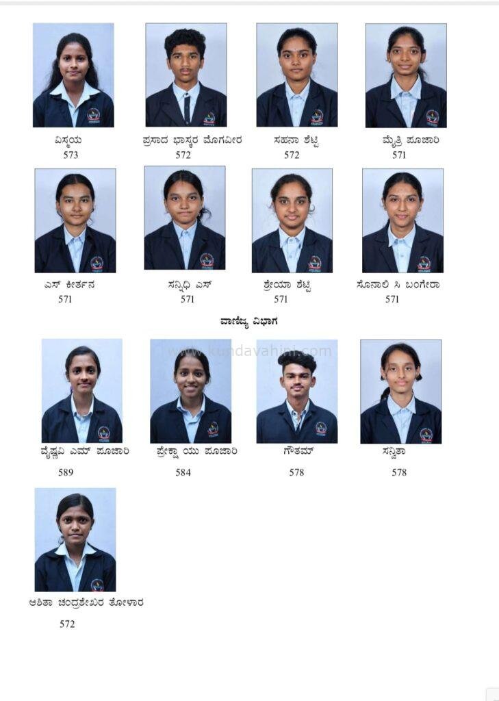 ಎಸ್ ಕಿರ್ತನ (571) ಸನ್ನಿಧಿ ಎಸ್ (571 ) ಶ್ರೇಯ ಅರ್ ಶೆಟ್ಟಿ (571 ) ಸೊನಾಲಿ ಸಿ ಬಂಗೇರ (571) ವಾಣಿಜ್ಯ ವಿಭಾಗದಲ್ಲಿ – ವೈಷ್ಣವಿ ಎಂ ಪೂಜಾರಿ (589 ) ಪ್ರೇಕ್ಷಾ ಯು ಪೂಜಾರಿ (584 ) ಗೌತಮ್ (578 ) ಸನ್ವಿತಾ (578 ) ಆಶಿತಾ (572)