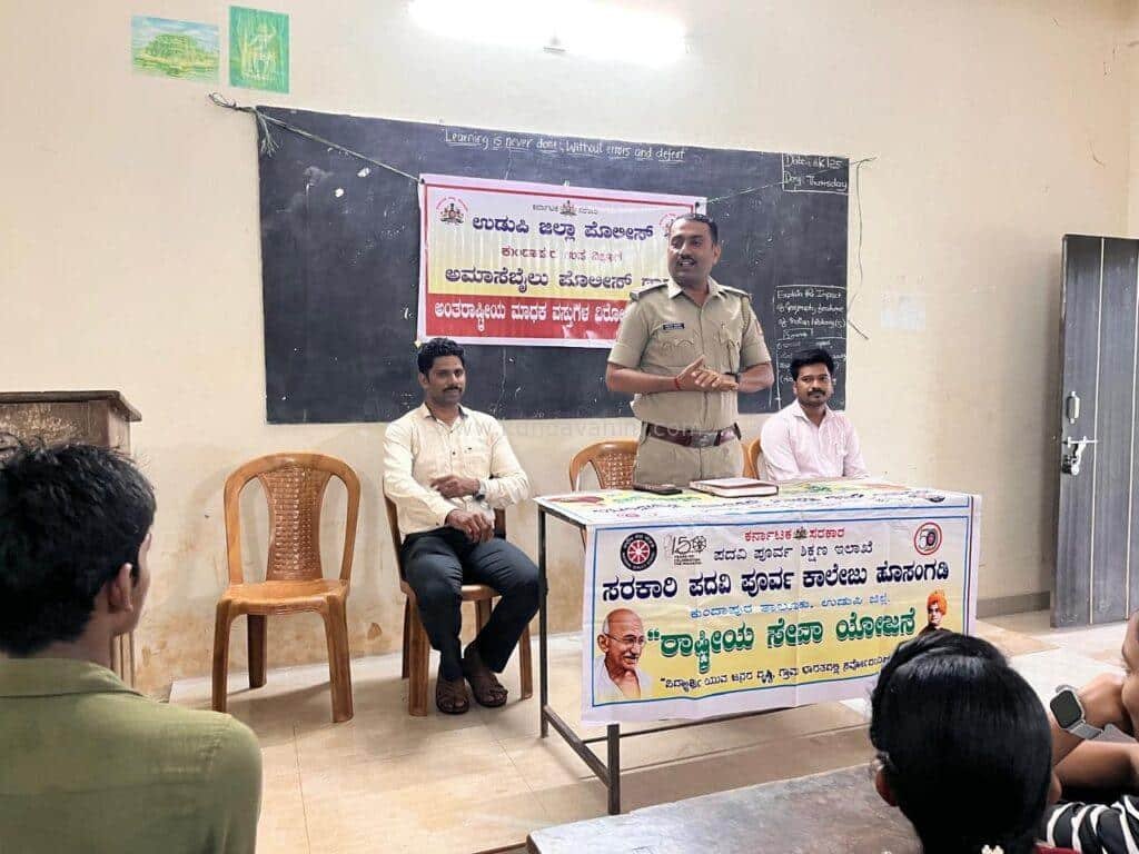 ಅಮಾಸೆಬೈಲು ಪೊಲೀಸ್ ಠಾಣೆಯ ಎಸ್. ಐ ಶ್ರೀ ಅಶೋಕ್ ಕುಮಾರ್ ಅವರು ವಿದ್ಯಾರ್ಥಿಗಳನ್ನುದ್ದೇಶಿಸಿ ಮಾತನಾಡಿ ‘ ನಶಾ ಮುಕ್ತ ಭಾರತ ‘ ಈ ಕಾರ್ಯಕ್ರಮದಡಿಯಲ್ಲಿ ಹಮ್ಮಿಕೊಂಡ ವಿವಿಧ ಯೋಜನೆಗಳನ್ನು ತಿಳಿಸಿದರು. ಬೀಡಿ, ಸಿಗರೇಟ್, ತಂಬಾಕು, ಇತರ ಮಾದಕ ದ್ರವ್ಯಗಳ ದುಶ್ಚಟಗಳಿಂದ ಆಗುವ ಪರಿಣಾಮಗಳ ಕುರಿತು ಸವಿಸ್ತಾರವಾಗಿ ಮಾಹಿತಿ ನೀಡಿದರು. ಅಲ್ಲದೆ ಸೈಬರ್ ಕ್ರೈಂ ಹೇಗೆ ನಡೆಯುತ್ತದೆ, ಯಾವ ರೀತಿ ಮುನ್ನೆಚ್ಚರಿಕೆ ವಹಿಸಬೇಕು ಎನ್ನುವುದರ ಕುರಿತು ವಿದ್ಯಾರ್ಥಿಗಳಲ್ಲಿ ಅರಿವು ಮೂಡಿಸಿದರು.