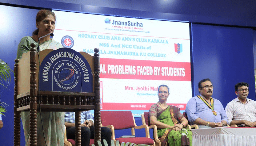 ಕಾರ್ಕಳ ಜ್ಞಾನಸುಧಾ ಪದವಿ ಪೂರ್ವ ಕಾಲೇಜಿನಲ್ಲಿ ಕಾರ್ಕಳದ ರೋಟರಿ ಕ್ಲಬ್, ಆನ್ಸ್ ಕ್ಲಬ್ ಹಾಗೂ ಕಾಲೇಜಿನ ಎನ್.ಎಸ್.ಎಸ್ ಮತ್ತು ಎನ್.ಸಿ.ಸಿ ಘಟಕದ ವತಿಯಿಂದ ನಡೆದ ಮಕ್ಕಳು ಎದುರಿಸುತ್ತಿರುವ ಮನೋಸಮಸ್ಯೆಗಳ ಕುರಿತ ಕಾರ್ಯಕ್ರಮದಲ್ಲಿ ಮಾತನಾಡಿದರು.