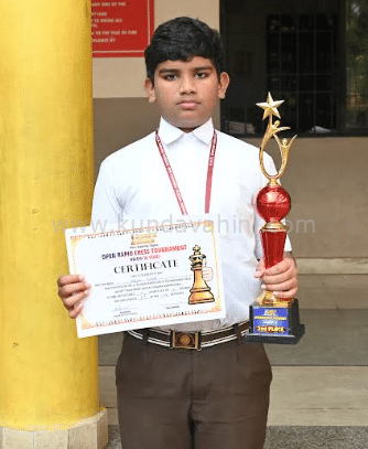 ಕುಂದಾಪುರ ( ನ ,10): ಕುಂದಾಪುರ ಎಜುಕೇಶನ್ ಸೊಸೈಟಿ(ರಿ.) ಪ್ರವರ್ತಿತ ಎಚ್ ಎಮ್ ಎಮ್ ಮತ್ತು ವಿ ಕೆ ಆರ್ ಆಚಾರ್ಯ ಆಂಗ್ಲ ಮಾಧ್ಯಮ ಶಾಲೆಗಳ 6ನೇ ತರಗತಿಯ ಅದ್ಯಾನ್ ಜಾವೆದ್ ಸಾಗರದ ಕಿಂಗ್ಸ್ ಮೇಜ್ ಅಕಾಡೆಮಿ ಇವರು ಆಯೋಜಿಸಿದ ಓಪನ್ ರಾಪಿಡ್ ಚೆಸ್ ಟೂರ್ನಮೆಂಟ್ ಅಂಡರ್ 12 ಕೆಟಗರಿಯಲ್ಲಿ ದ್ವಿತೀಯ ಸ್ಥಾನವನ್ನು ಪಡೆದಿರುತ್ತಾನೆ.