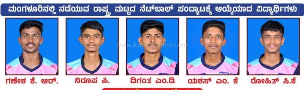ಯಶಸ್ ಎಂ. ಕೆ, ದ್ವಿತೀಯ ಕಲಾ ವಿಭಾಗ, ರೋಹಿತ್ ಸಿ.ಕೆ,ದ್ವಿತೀಯ ಕಲಾ ವಿಭಾಗಇವರು ಡಿಸೆಂಬರ್ 25 ರಿಂದ 30 ತನಕ ನೆಡೆಯುವ ರಾಷ್ಟ್ರ ಮಟ್ಟದ ಪಂದ್ಯಾಟಕ್ಕೆ ಆಯ್ಕೆಯಾಗಿದ್ದಾರೆ.
